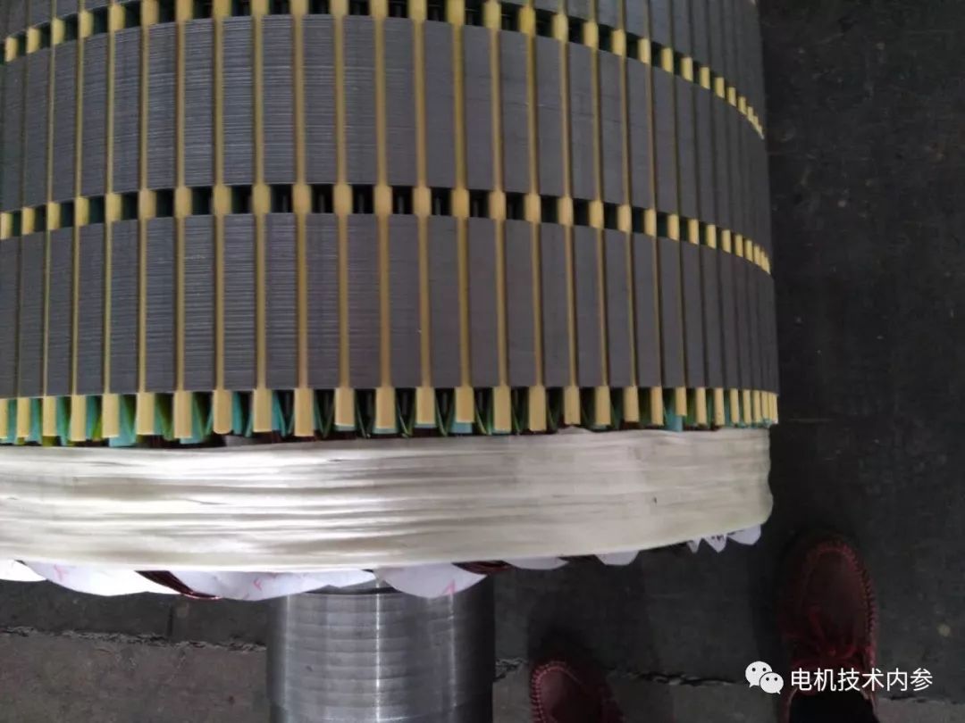 支撑并拧紧。转子端部增加支撑和端箍,克服转子绕组的径向离心力,防止电机运行时绕组受热变形。