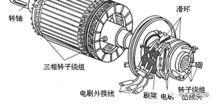 绕线式转子电机转子绕组的三相对称绕组的三端连接在一起,称为星点;端与固定在转轴上的三个相互绝缘的滑环连接,并通过滑环和滑环上的电刷与外部三相变阻器连接,具有运行中起动转矩大、起动电流小、调速范围小的优良特性。当变频电机不能工作时,绕线转子电机是唯一的选择。