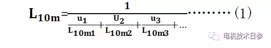 在每个工作系统中,轴承载荷和工作条件可以用一个固定的平均值来表示。然后,根据每个负载段所需的工作时间或转数,计算负载段的分段寿命。例如,N1表示在负载P1下某个工作区间所需的转数,N表示应用工作周期的总转数,即在负载P1下将使用分段寿命U1=N1/N,其计算寿命为L10m1。在变化的工作条件下,轴承的寿命可以通过公式(1)估算:
